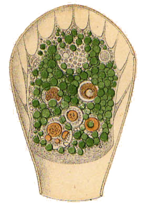 Auch Eugène Penard war dieser Meinung (übersetzt): "Sowohl für mich als auch für Leidy scheint es, dass bei dieser Art wie auch bei anderen (Nebela, Arcella) diese Poren für den Austritt und die Rückführung des Wassers während des Hervortretens oder Zurückziehens der Pseudopodien verwendet werden müssen."