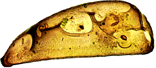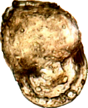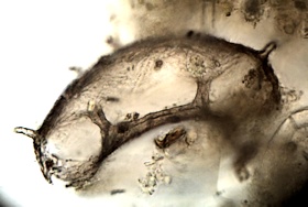 Die Schale dieses Exemplars besteht nur aus dem körpereigenen Chitin, ohne verstärkende Xenosomen.