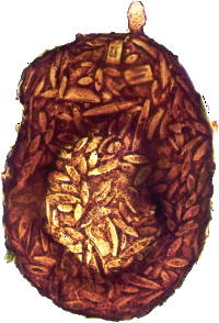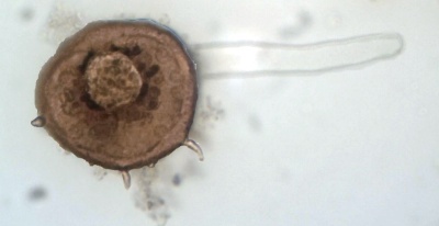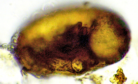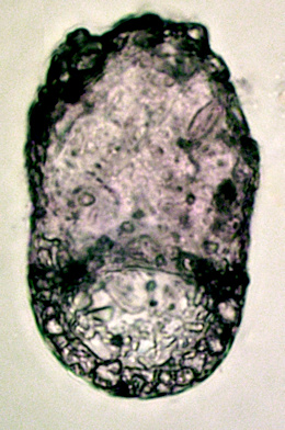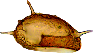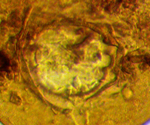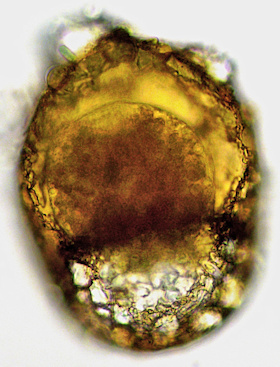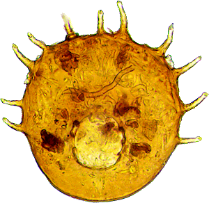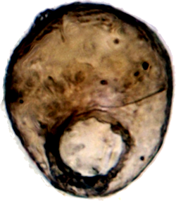 Aus trockenem Moos. 100 µm hoch, 98 µm breit, Mund 45 µm.