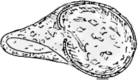 Schalen dieses Komplexes bestehen aus zwei Teilen, der eigentlichen Schale mit der seitlich versetzten Mundöffnung und dem davorliegenden Visier.