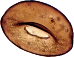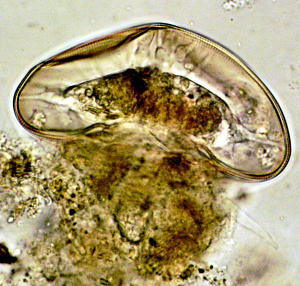 Arcella crenulata, Durchmesser 106 µm, Zyste 61 µm.