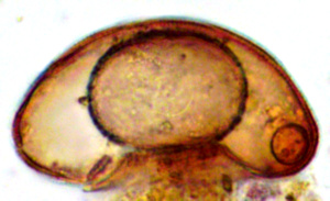 128 µm breites Exemplar, Mundöffnung 40 µm, aus dem Ibmer Moor.