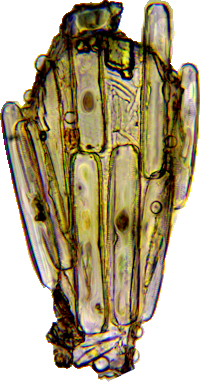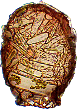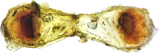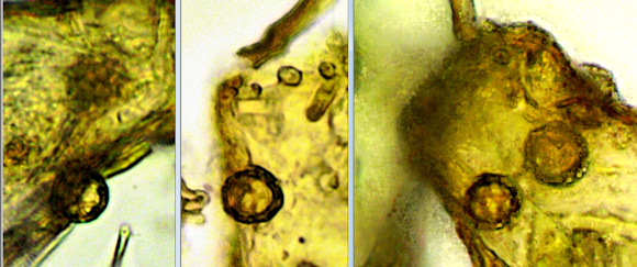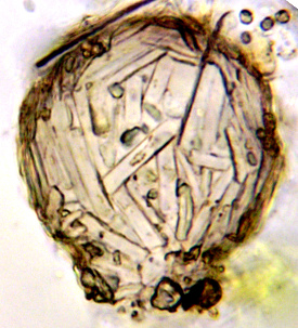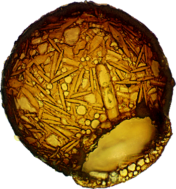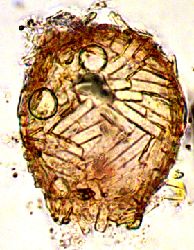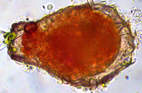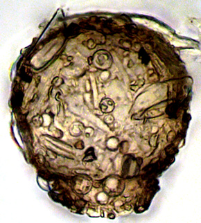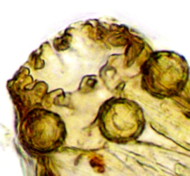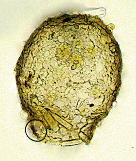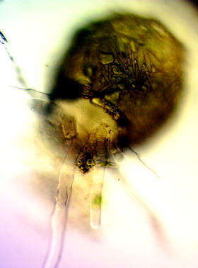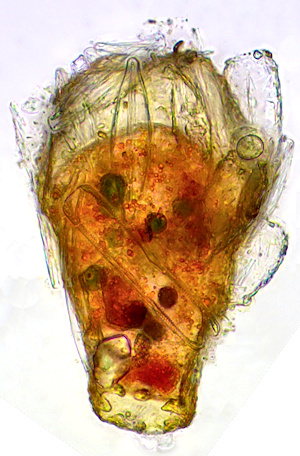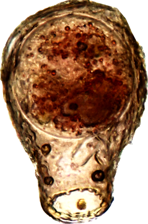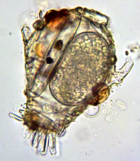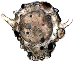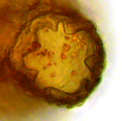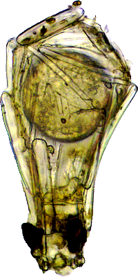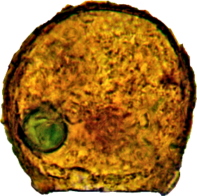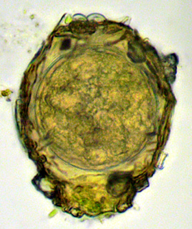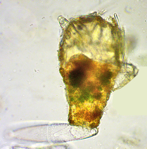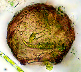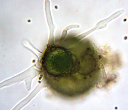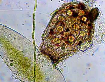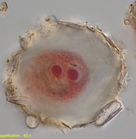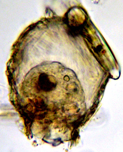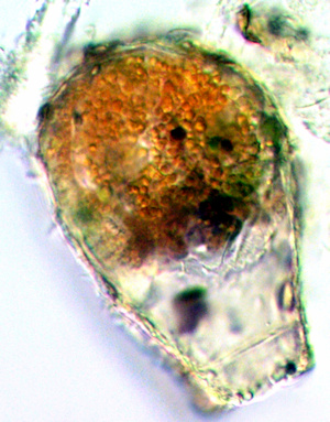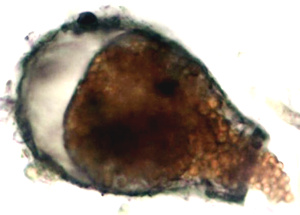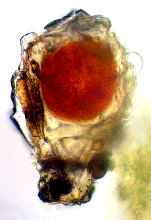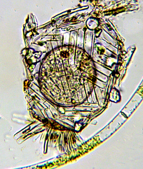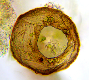Ein weiteres Exemplar, im Durchlicht, im Inneren eine Dauerzyste.