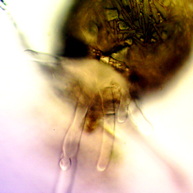 unter schiefer Beleuchtung (Kreutz-Filter), so erkennt man besser die fast gläsernen Hörnchen. Die Art ist säureliebend.
