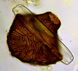 mit einer angehefteten großen Diatomee.