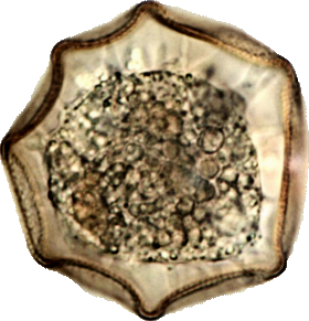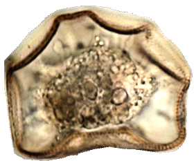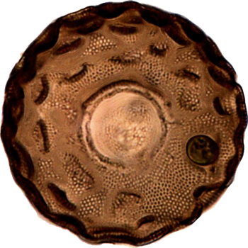 Das „buckelige Uhrglastier“. Eine Gruppe von halbkugeligen Arcella-Arten, deren Oberflächen regelmässige Falten und Vertiefungen aufweisen.