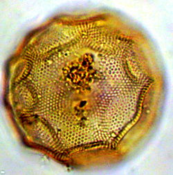 Zwei Schärfenebenen einer Arcella cf. conica, Gehäusebreite 80µm.