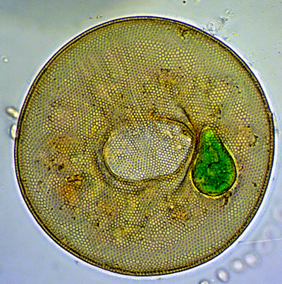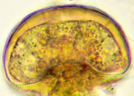Oben und links: Drei ca. 60 - 70 µm kleine Exemplare aus dem Balksee-Moor.