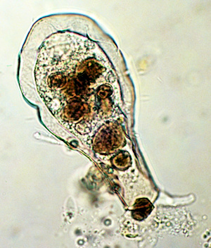 Auch Eugène Penard war dieser Meinung (übersetzt): "Sowohl für mich als auch für Leidy scheint es, dass bei dieser Art wie auch bei anderen (Nebela, Arcella) diese Poren für den Austritt und die Rückführung des Wassers während des Hervortretens oder Zurückziehens der Pseudopodien verwendet werden müssen."