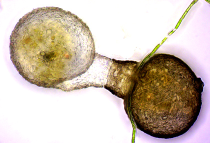 2x Teilung. Auf der oberen, technisch nicht sehr guten Aufnahme besitzt das linke Exemplar (ich vermute die "Mutter") die für