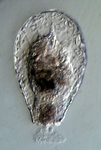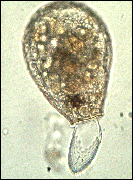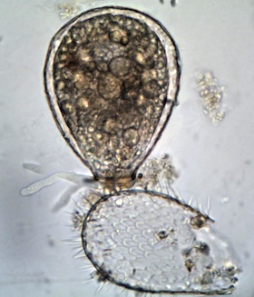 Offenbar verzehrt sie gerade eine Euglypha oder beraubt sie ihrer Schuppen.