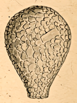 "Eine Erklärung für die Anwesenheit der Poren ist vielleicht folgende: Wenn die Amöbe sich fortbewegen will, muss sie die Plasmamasse durch die Öffnung stecken und füllt dann vermutlich die gesamte Öffnung aus. Für das in der Schale bleibende Plasma könnten jetzt die Poren zum Ausgleich des durch Herausstrecken oder Einziehen des Plasmas entstehenden Unter- bzw. Überdrucks im Schaleninnern dienen."