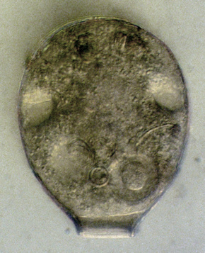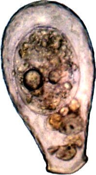 Transparent, ohne Armierung. Encystiert?
