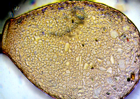 Ein weiteres, 146 µm großes Exemplar schief beleuchtet, 100-fach Achromat.