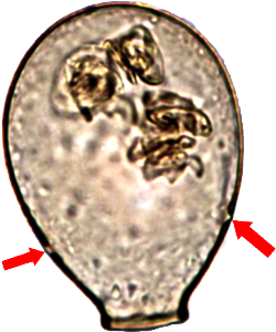 die Pfeile zeigen auf zwei Poren.