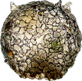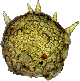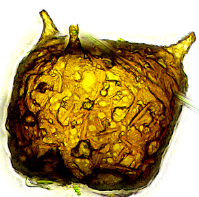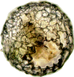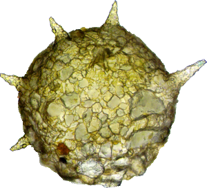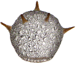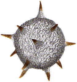Zwei Anasichten eines Exemplars aus dem Kreidesee Hemmoor. 195 µm breit und hoch, ca. 8 Hörner, teilweise abgebrochen.