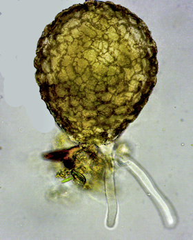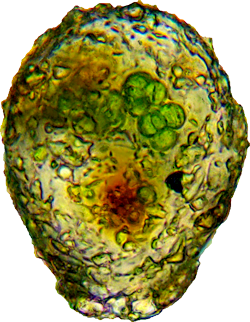 mit symbiontischen Algen. (ca 70 µm hoch, Mittermoos, Tirol)