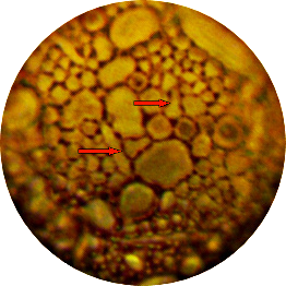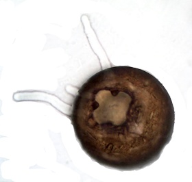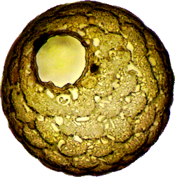 Rotbraune Variante, glatt mit wenigen Xenosomen, vierlappige Öffnung.