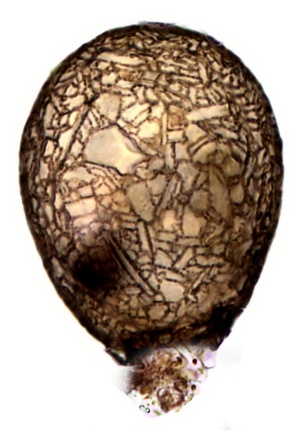 Netzelia oviformis, 75 µm hoch.